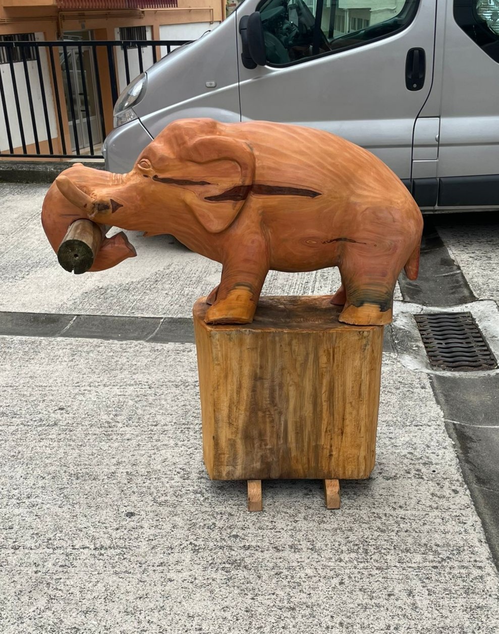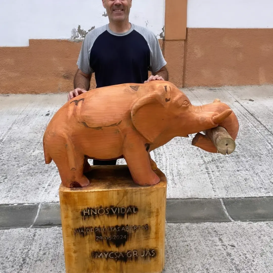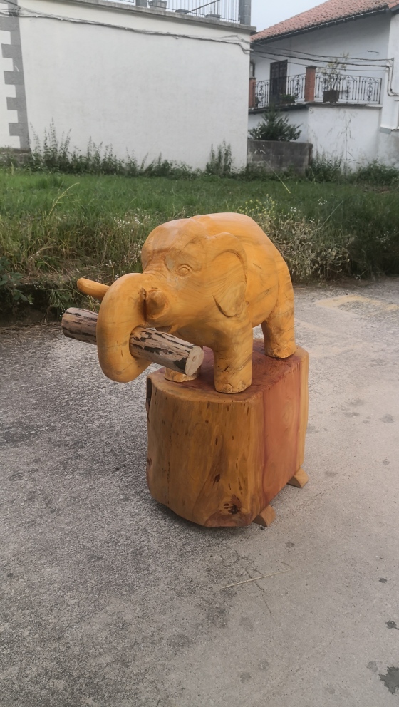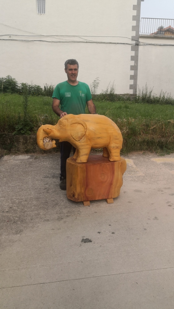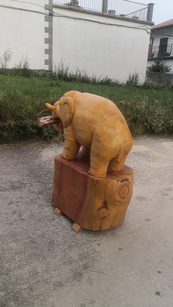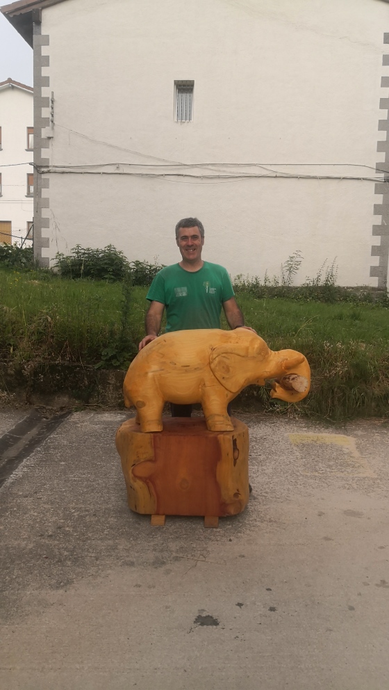 Recientemente Mikel Lasarte ha tallado dos elefantes por encargo de Grúas Mycsa, uno ha ido a Madrid y el otro a Murcia. El primero se realizó en madera de abeto procedente de un gran ejemplar apeado en Barañain, mientras que el segundo salió de una secuoya centenaria que se secó en uno de los jardines de Pamplona.
