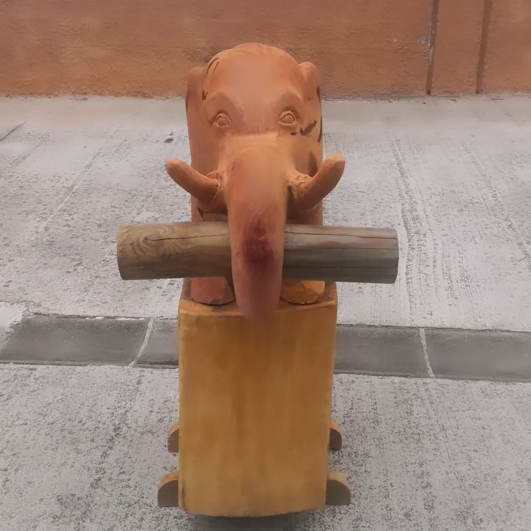 Elefantes tallados a motosierra por Mikel Lasarte