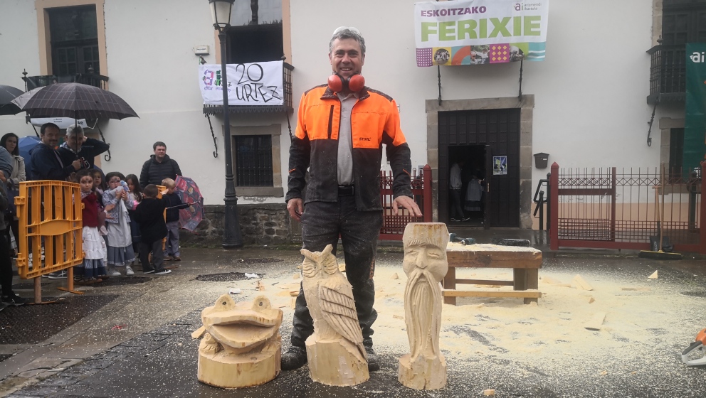 Este año hemos comenzado con mucha fuerza la temporada de talla con motosierra. Mikel Lasarte, escultor de Ikusgarri, ya ha visitado Sástago (Zaragoza), Barañain (Navarra), Ribamontán al Mar (Cantabria), Burgos capital, Eskoriatza (Gipuzkoa) y Alonsotegi (Vizcaya) y todavía le quedan muchos compromisos por cumplir a lo largo del verano.