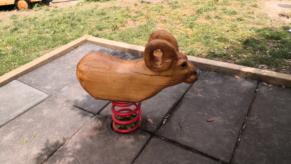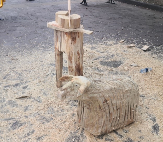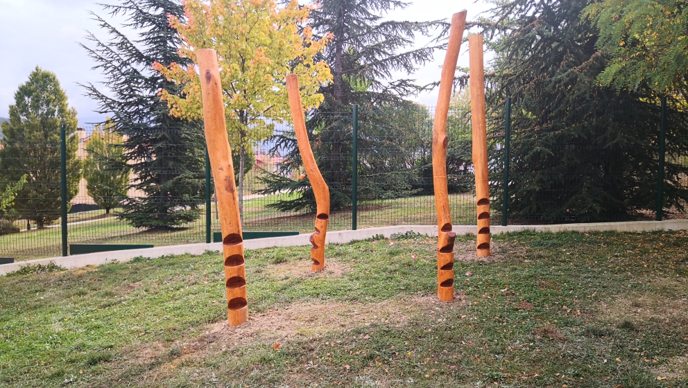 Nuevo Parque infantil tallado a motosierra por Mikel Lasarte en la Granja Escuela de Fundación Ilundáin